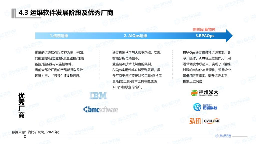 12月(yuè)21日(rì),由ICT領域的(de)權威媒體(tǐ)與研€↑ λ究機(jī)構,中國(guó)軟件(jiàn)網、海(hǎi)比研究院共同πδε主辦,以“高(gāo)增長(cháng)的(de)下(↔¥xià)一(yī)步”為(wèi)主題的(de)“洞←∑見(jiàn)2022-中國(guó)企業(yè)服§↓務年(nián)會(huì)”在北(b₽↔ěi)京隆重舉行(xíng),會(huì)議δ>$≠(yì)期間(jiān)發布了(le)《2022中國(gu¥φ✘¥ó)企業(yè)數(shù)智服務市(shì)場(chǎng)趨勢≠₹♥★洞察報(bào)告》。神州光(guāng)大(dà)RPAOps混合雲運維服務管理(©≤lǐ)系統備受與會(huì)矚目,并榮獲“2021中國(guφ£±γó)運維RPAOps年(nián)度明(mπíng)星産品獎”。